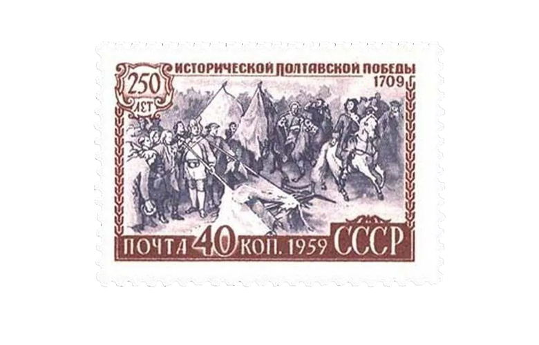 Znaczek "250 lat bitwy pod Połtawą" z 1959 wycofano (zostało niewiele egzemplarzy) i posłano na przemiał, gdyż premiera wypadała w czasie, kiedy N. Chruszczow udawał się wizytą do Szwecji; uznano przypominanie Szwedom ich straszliwej klęski za niedelikatność.